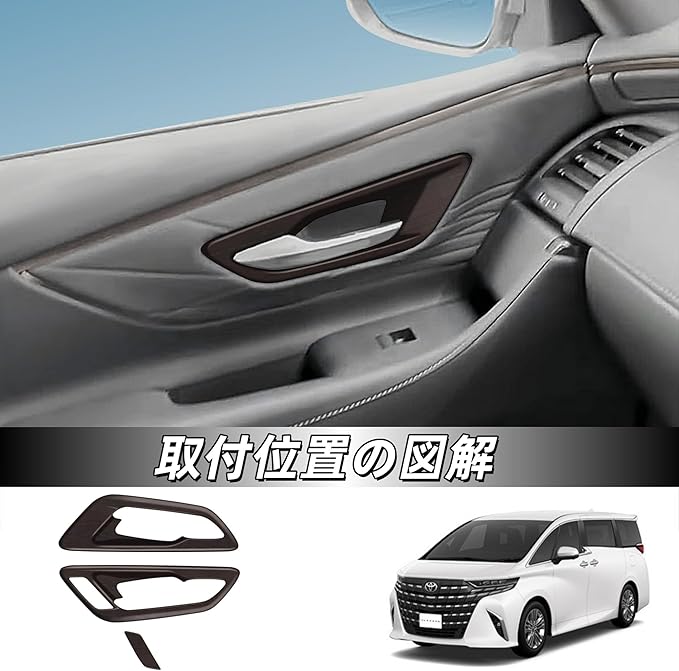新型アルファード/ヴェルファイア 40系に対応 アクセサリー 車内インテリアドアハンドルトリム 内装パネル装飾カバー 専用 グッズ(艶消し木目調)