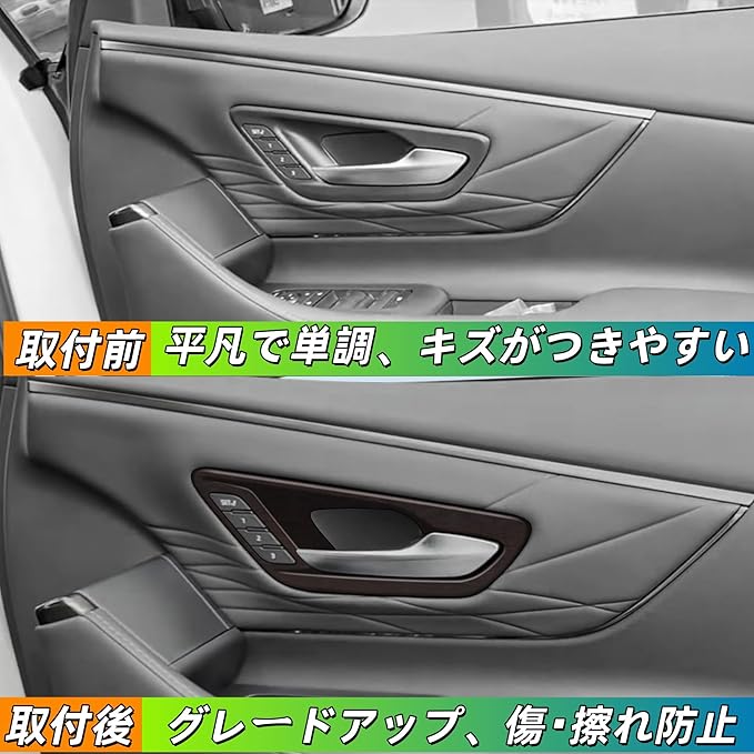 【適合車種】:この内装パネルは、アルファード/ヴェルファイア 40系の車種に完全に適合し、車内の装飾品質を向上させることができます。商品は必要な位置に簡単に取り付けることができます。 【清潔とスタイル】:車内を整理しやすくなります。のを防ぎ、キズ、汚れ、水濡れを効果的に防止し、快適な車内環境を保つことができます。同時に、スタイリッシュなデザインで車内の内装を引き立て、高級感を演出します。 【高品質ABS素材】:高品質のABS素材を採用しており、耐久性に優れています。色あせや変形がしにくく、長期間美しい状態を保つことができます。また、取り付け部位と密着する、ガタツキが生じません。無臭なので、快適なドライブをお楽しみいただけます。 【簡単取付】:取り付け方法は簡単で、誰でも容易に操作できます。特別な工具は必要なく、製品を取り付け部位に接続するだけで設置が完了します。 【品質保証】当社では出荷前に厳格な検査を行っておりますので、ご安心してご購入いただけます。もし何かご質問やご不明点がございましたら、直ちに対応いたします。