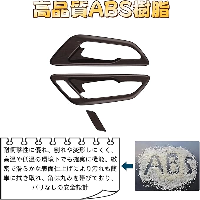 【高品質ABS素材】:高品質のABS素材を採用しており、耐久性に優れています。色あせや変形がしにくく、長期間美しい状態を保つことができます。また、取り付け部位と密着する、ガタツキが生じません。無臭なので、快適なドライブをお楽しみいただけます。
