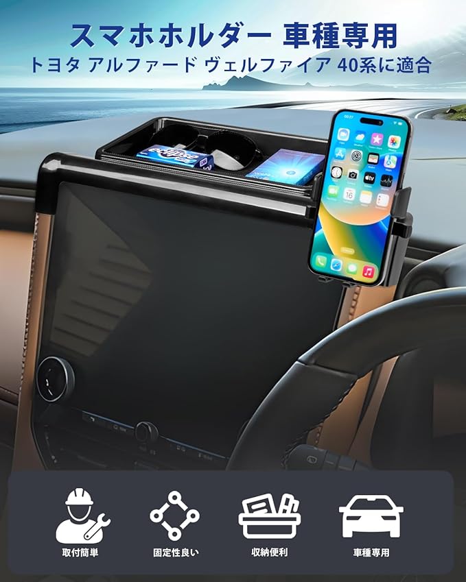 トヨタ アルファード ヴェルファイア 40系に適合 スマホスタンド Alphard Vellfire 4代目 2023年~現行 車載 携帯ホルダー ナビ設置 スマホホルダー 収納 車 アクセサリー 携帯スタンド 360度回転 片手操作 ワンタッチ開閉 安定 多機種対応