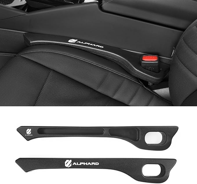 【アルファード 専用】隙間クッション 厚型 ALPHARD 専用ロゴ 隙間埋め 車用 シートサイド クッション アルファード 30系 適用 正・裏面取付可 シート コンソール 隙間収納 落下防止 小物入れ 内装パーツ 運転席+助手席 ロゴ左右対称設計 2本入り (ブラック, アルファード 専用)