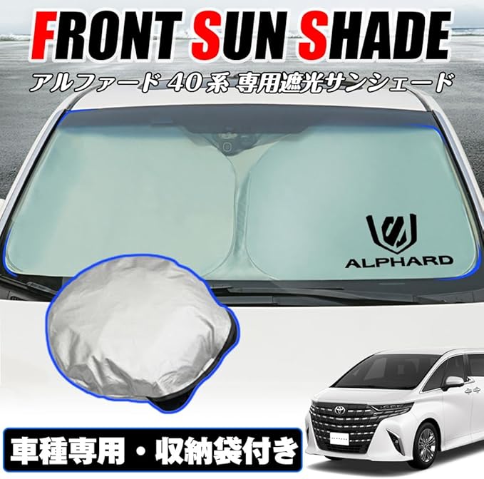 アルファード 40系専用 サンシェード フロントガラス用 暑さ対策 軽量 コンパクト 紫外線カット 劣化防止 折りたたみ収納 カーサンシェード 断熱 日よけ 収納袋付き 簡単取付 プライバシー保護 車用グッズ