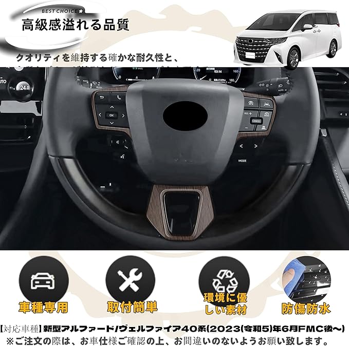 適用 新型アルファード40系 ヴェルファイア/ベルファイア40系 アクセサリー カスタムパーツ ステアリングパネルカバー 車種専用内装グッズ 木目調メカニカルボタン