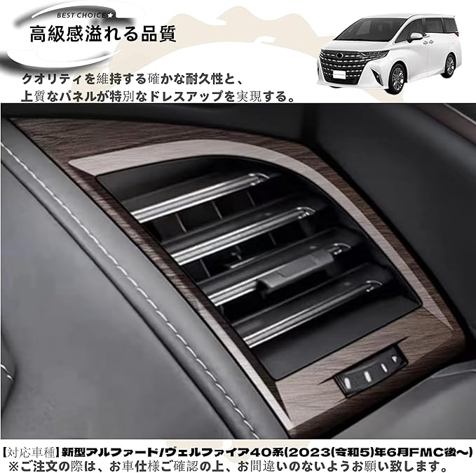 適用 新型 アルファード40系 ヴェルファイア 40系 カスタム アクセサリー パーツ 専用車種 室内装 用品 グッズ インテリア サイド エアコンソール吹出し口 ガーニッシュ パネル カバー 木目調ブラウン