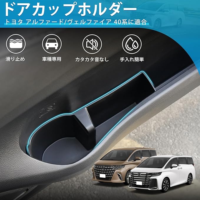Mozan トヨタ 新型アルファード40系 ヴェルファイア 40系に適合 ドアポケット ドアトレイ ドアカップホルダー Alphard Vellfire 4代目 2023年-現行 ドアボックス フロントドアトレイ ドアハンドルポケット ドアドリンクホルダー ドア収納ボックス 衝撃吸収 汚れ防止 滑り止め 小物入れ アクセサリー 内装パーツ 取付簡単