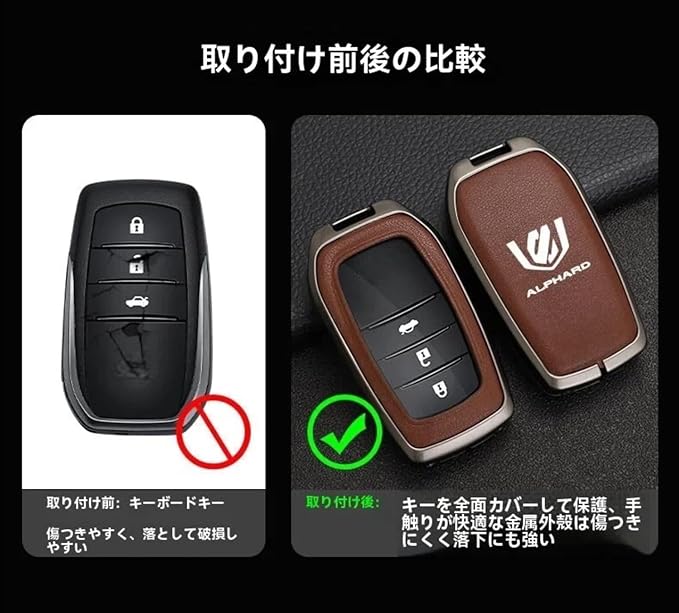 アルファード40系 キーケース アルファード30系後期 ヴェルファイア シリーズ 専用キー保護カバー 本革 メタル キー バッグ 6 キー ポジション フルカバー アンチスクラッチ アンチバンプ シールド干渉 カスタマイズされたキーシェル ギフトボックス トヨタ車の改造アクセサリー