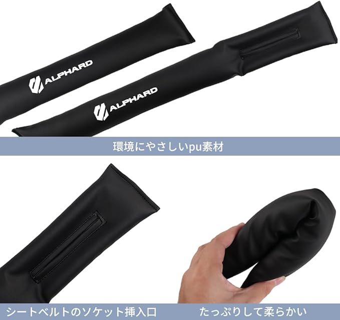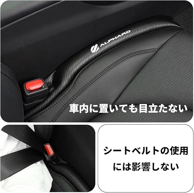 【アルファード 専用】シート隙間クッション 隙間埋め 車用 ALPHARD 専用ロゴ シートサイド クッション アルファード カスタム 20系 30系 40系 シート コンソール 隙間 落下防止 小物放置 車内 puレザー カー用品 内装パーツ 運転席+助手席 ロゴ左右対称設計 2本入り (ブラック, アルファード 専用)