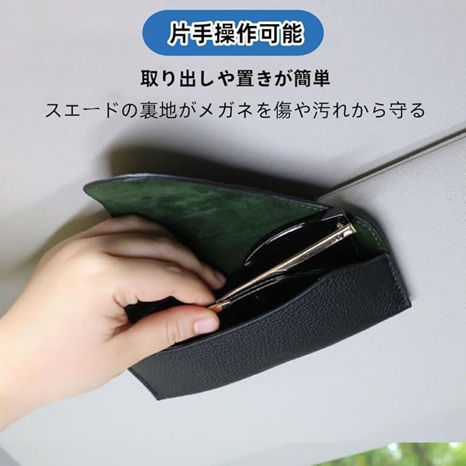 【厚みのある素材で変形しにくい】この車用サングラスケースは高品質のPUレザーを採用しており、耐久性に優れ、長期間の使用にも耐えられます。他のソフトケースと比べて、当社の製品はより厚い質感を備えており、メガネをしっかりと保護し、日常的な損傷や潰れを防ぎます。頑丈で耐久性のある高品質のPUレザーで作られているため、車の眼鏡ホルダーを長い間使用できます。また、内側はスエード素材を使用しており、手触りが柔らかく、メガネの表面を傷つけにくいです。