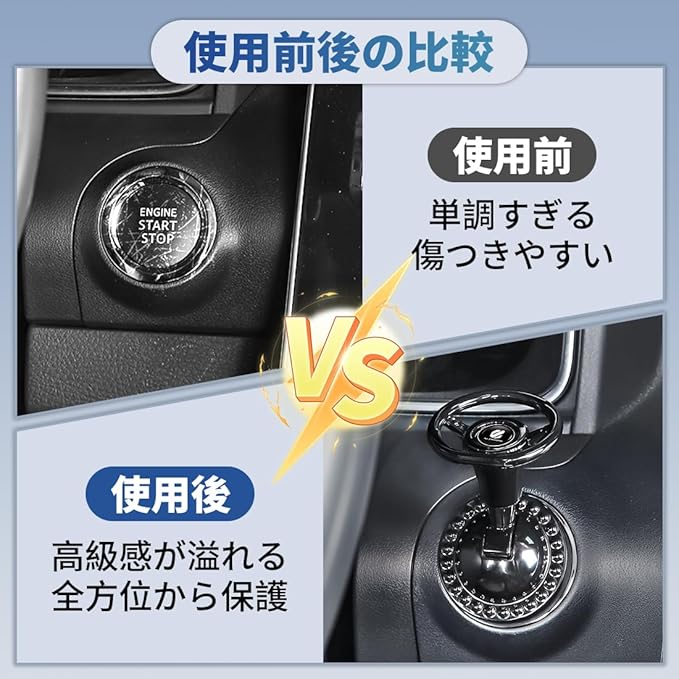 【ダメージ軽減 しっかり保護】この車用プッシュスタートは、車のスタートボタンにぴったりフィットし、塵や水分の侵入を効果的に防ぎます。長期間の接触によるボタンの錆や塗装の剥がれといった問題を避け、車の部品を全方位から保護します。これにより、後の修理や交換のコストを削減し、スタートボタンを常に新品同様の状態に保ちます。