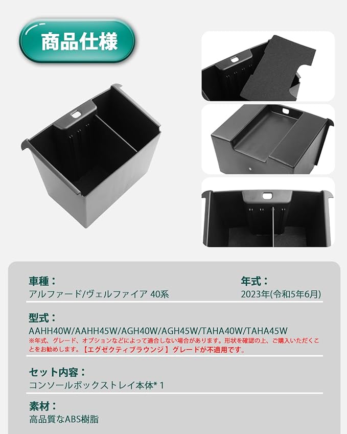 【対応車種】アルファード40系(令和5年6月) ヴェルファイア 40系(令和5年6月) Z グレード対応 ご注意:Executive Lounge グレードが不適用です。【パッケージ内容】:リアマルチボックス本体*1