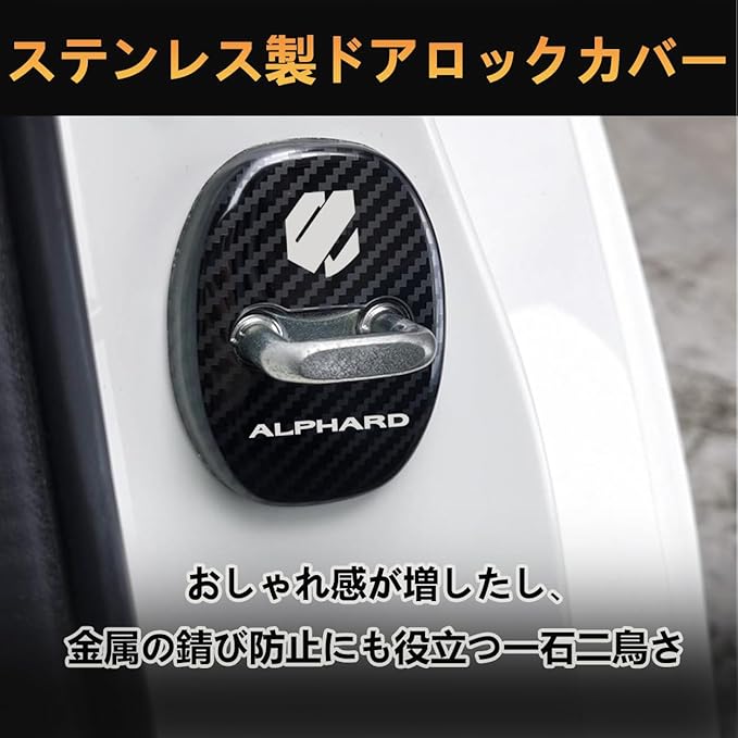 トヨタ に適用 新型アルファード(ALPHARD) AGH40W AGH45W 40系(2023年6月~) に適合 ドアストライカーカバー専用 ドアロックカバー ステンレスカバー 簡単取り付け メタリック 4個セット