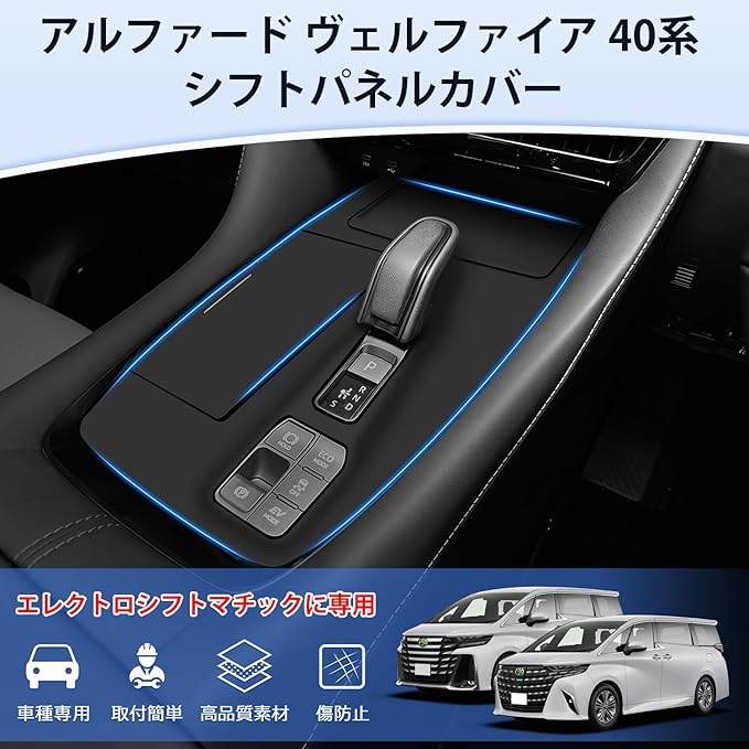 2.【傷防止には最強】:弊社の40系アルファード/ヴェルファイア専用シフトパネルカバーにより、キズ付きの心配もなくなりました。また、指紋や汚れなども防止し、防水と防塵にも優れているし、大切な愛車を守ります。