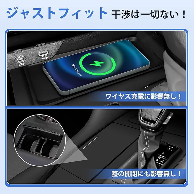 3.【ジャストフィット】:現車採寸を施したので最高のフィット感を実現し、シフトパネルの形状に密着してずれる事もなく、蓋の開閉に干渉もしなく、車内のドレスアップにも最適です。