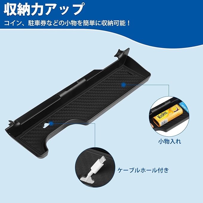 3.【ケーブルホール&収納力UP】:製品にケーブルホールが付き、スマホを充電しながら置くだけで収納可能!充電にも干渉しない!なお、車内の限られたスペースを最大限に活用できる収納アイテム!駐車券、スマートフォン、メガネ、鍵などのよく使う小物を効率的に収納できます。