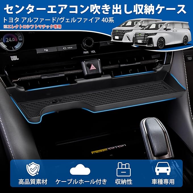 Mozan トヨタ 新型 アルファード40系 ヴェルファイア40系に適合 センターエアコン吹き出し収納ケース 【エレクトロシフトマチック専用】 Excective Loungeに適合 収納ボックス センターコンソールトレイ コンソールボックス コンソールトレイ 小物入れ 小物収納 スマホ置き ケーブルホール 滑り止めマット インテリア アクセサリー 取付簡単