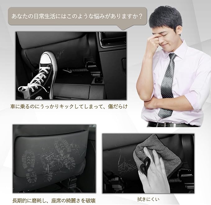 【あらゆる場面で活躍する万能ガード。家族でのお出かけに最適!】 子どもやペットがいる家庭にとって外出の第一選択です!キックガードは足跡、食べ物の残滓、液体の染みを遮断し、長距離旅行でも座席を清潔に保つことができます。キックガードは目立たないデザインで、ビジネスシーンでも車内の上品さをキープ。