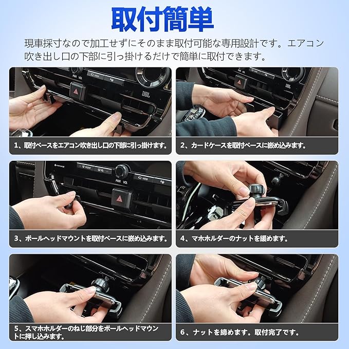 【取付簡単】現車採寸なので加工せずにそのまま取付可能な専用設計です。エアコン吹き出し口の下部に引っ掛けるだけで簡単に取付できます。