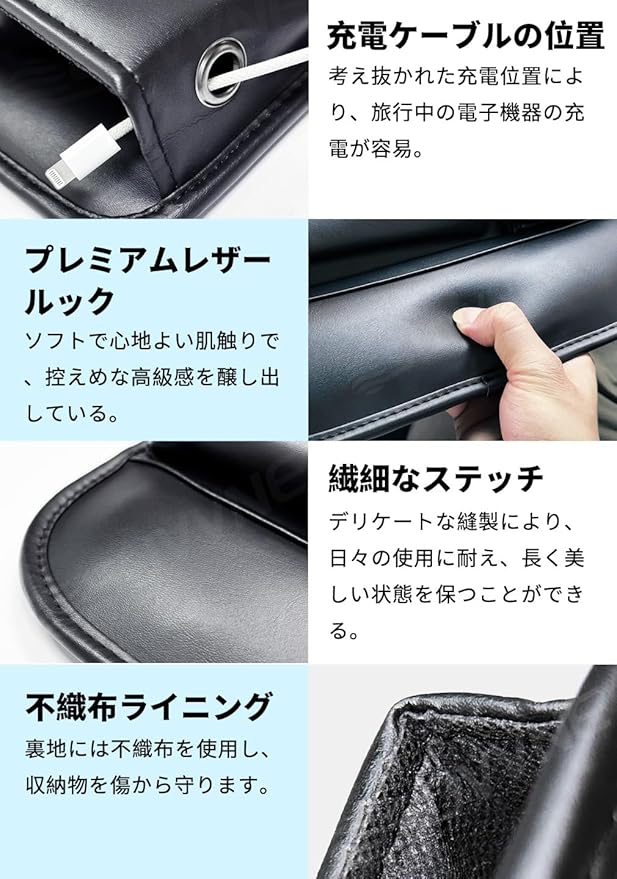 [高品質素材]:ソフトで肌触りの良いブラックレザーを使用しており、美しいだけでなく、耐摩耗性、耐久性にも優れている。 レザーの表面は耐水性にも優れているので、うっかり食べこぼしをこぼしても内部に浸透することなく、簡単に拭き取ることができます。日常的な使用では、鍵のような鋭利なものが革の表面に触れても、その跡が目立ちにくい。