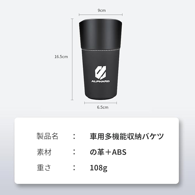 アルファード 車載ゴミ箱 コンパクトポータブル 対応 Alphard 40系 30系 車 インテリア アクセサリー の革とABS素材(ALPHARD,ブラック)