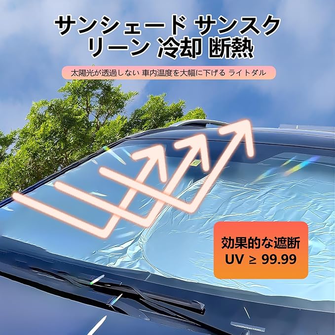 【層構造で四季対応・実用性優れる】アルミ遮熱シートとポリウレタンを交互重ねた 4 層構造で、夏は日差し・UV を遮り車内を涼しく、冬は冷気を防いで車中泊も快適。エアコン効率アップで省エネ。他社宣伝の 5 層は実質 2 層・厚く不便で、本製品は実用性に優れます。