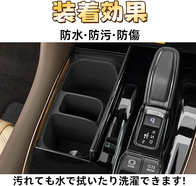 本品は、2023年6月以降に生産されたアルファード ヴェルファイア 40系専用に設計された商品です。環境に優しいシリコーン素材を使用し、安全で無毒、耐熱性・耐寒性に優れ、防水・絶縁性も備えており、長期間ご使用いただけます。実車のデータに基づいて設計されているため、元のカップホルダーに完璧にフィットし、既存の機能を妨げることなく、車内の質感を向上させます。取り付けは簡単で、工具不要で、取り付け面を清掃し、裏面の両面テープを剥がすだけでしっかり固定可能。シンプルで洗練されたデザインと高品質な仕上げが高級感を演出し、車内のインテリアと調和して、車全体の格調を高めます。