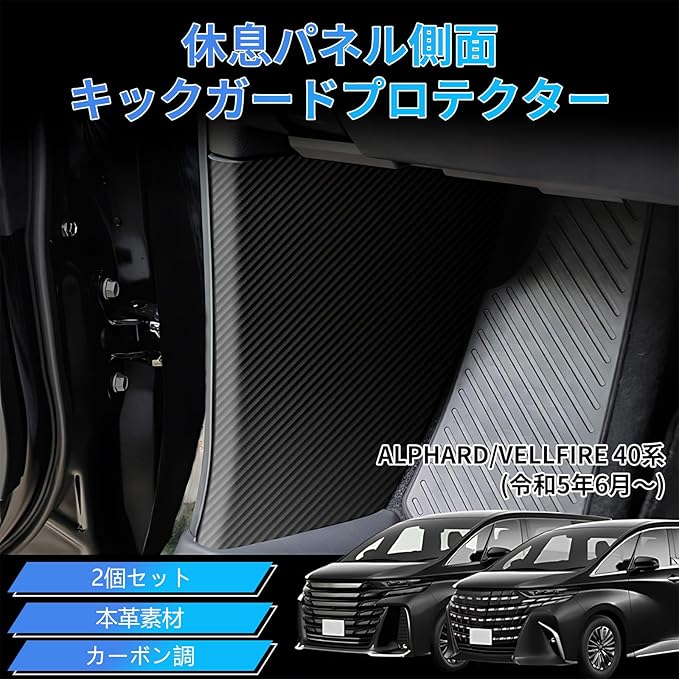 トヨタ アルファード ヴェルファイア 40系(2023年6月以降 現行モデル)専用 キックガード フットレストサイドプロテクター 2枚セット PVCレザー カーボン調 汚れ・キズ・蹴り防止 内装保護マット 簡単取付 車用アクセサリー 内装カスタム
