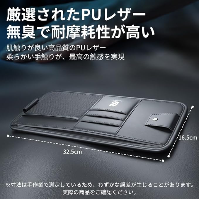 【高品質素材】サンバイザーの収納ポケットには、厳選された高級PUレザーを使用しています。細かい選別プロセスを経て、滑らかで柔らかい高級素材が選ばれました。「ゼロ異臭」を目指し、異臭の悩みから完全に解放されます。