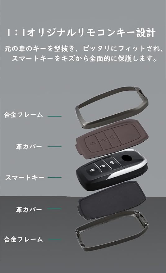トヨタ用 スマート キーケース キーホルダー 合金+PUレザー キーカバー プリウス ヤリスクロス シェンナ ヴィオス C-HR ヴェルファイア ミライ カムリ bZ4X マークX カローラ 2024 2025に適用 アクセサリー オシャレ | LEAD-SHOP