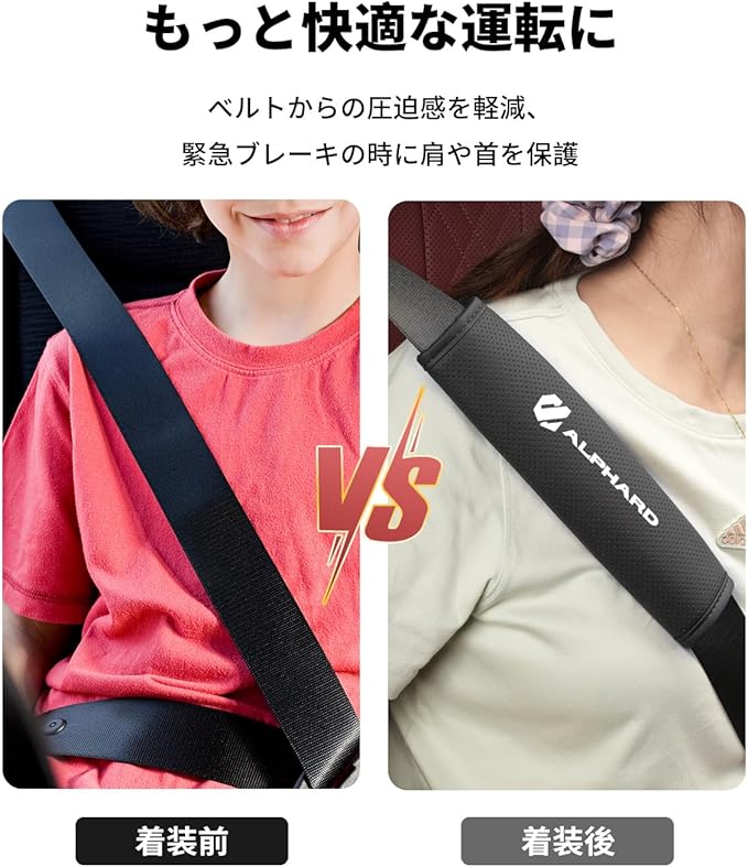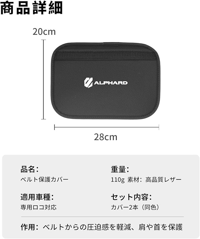 【専用ロゴ・おしゃれな設計】このシート ベルト 保護カバーはALPHARD 専用ロゴで、ご愛車に合わせやすい洗練なデザインが特徴です。適用車種: アルファード ALPHARD 20系 30系 40系 シリーズなどに適用。パッケージ内容:シートベルトカバーX2本。カラー:ブラック。2本セットで運転席と助手席に取り付けできます。