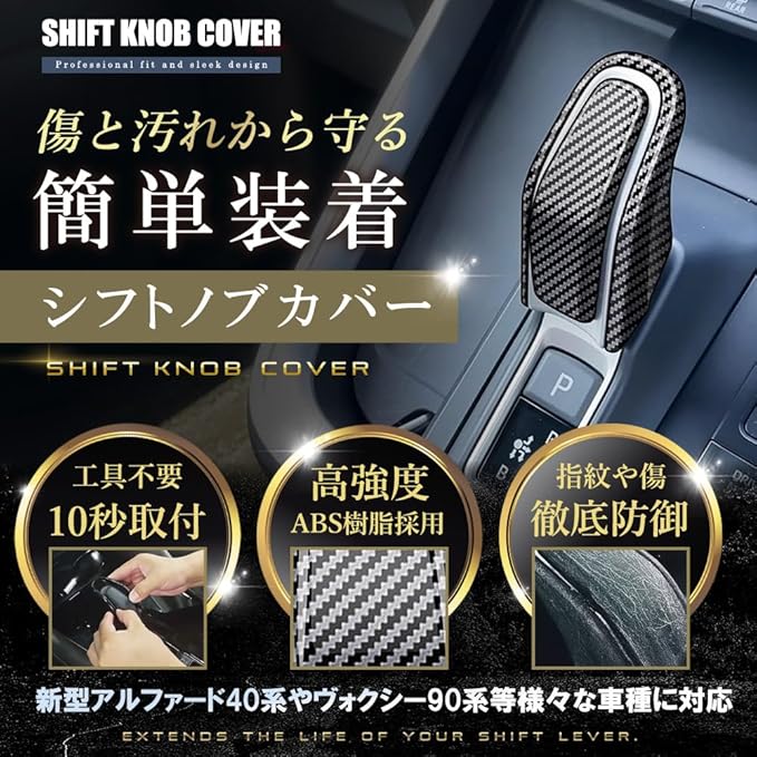 【Aleba117】新型 ヴォクシーノア90系 アルファード ヴェルファイア40系 シエンタ10系 シフトノブカバー アクセサリー カスタムパーツ 内装 (カーボン)