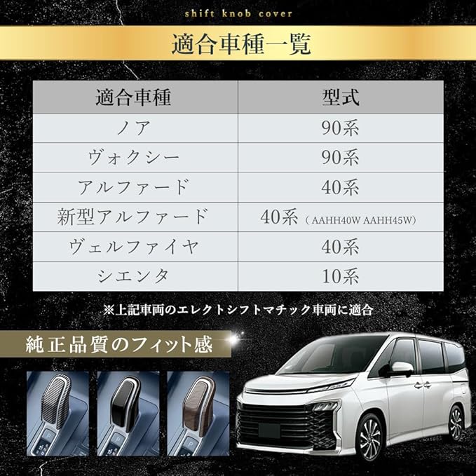 ✅️ 適合車種(必ずご確認ください): トヨタ 新型ヴォクシー/ノア(90系) アルファード/ヴェルファイア(40系) シエンタ(10系) ※お買い求めの際は、お車のシフトノブ形状をご確認ください。