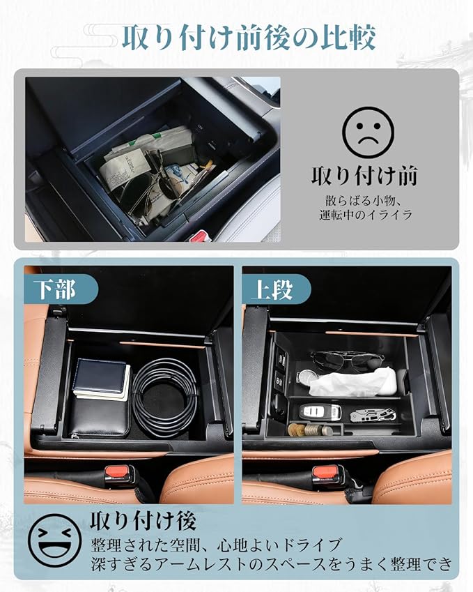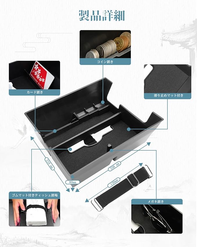 【収納性・便利】タバコ、駐車券、スマホ、カード、コイン、メガネ、クレジットカードや鍵など、小物関係の収納には最高です。滑り止め加工済みラバーマット、防塵、防キズ、小物が動いた際のカタカタ異音を減少します。ノーマルの無駄な広い空間をトレーを使う事によって機能性と収納性が飛躍的に上がりへの転換しましょう!!