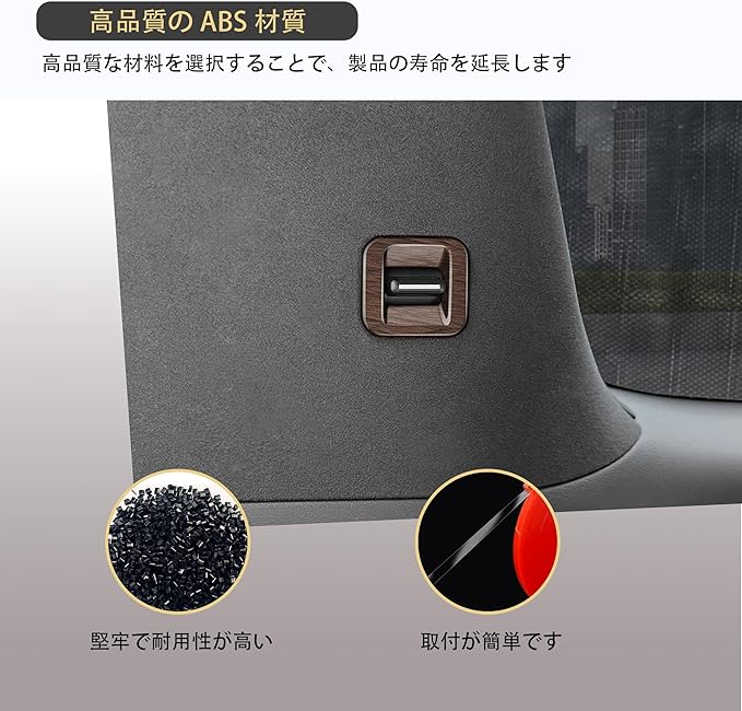 【高品質ABS素材】:高品質のABS素材を採用しており、耐久性に優れています。色あせや変形がしにくく、長期間美しい状態を保つことができます。また、取り付け部位と密着する、ガタツキが生じません。無臭なので、快適なドライブをお楽しみいただけます。