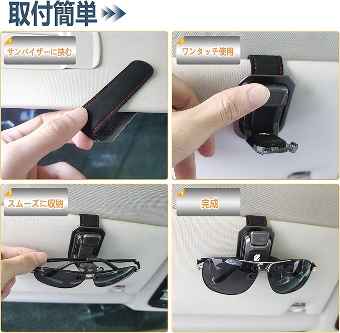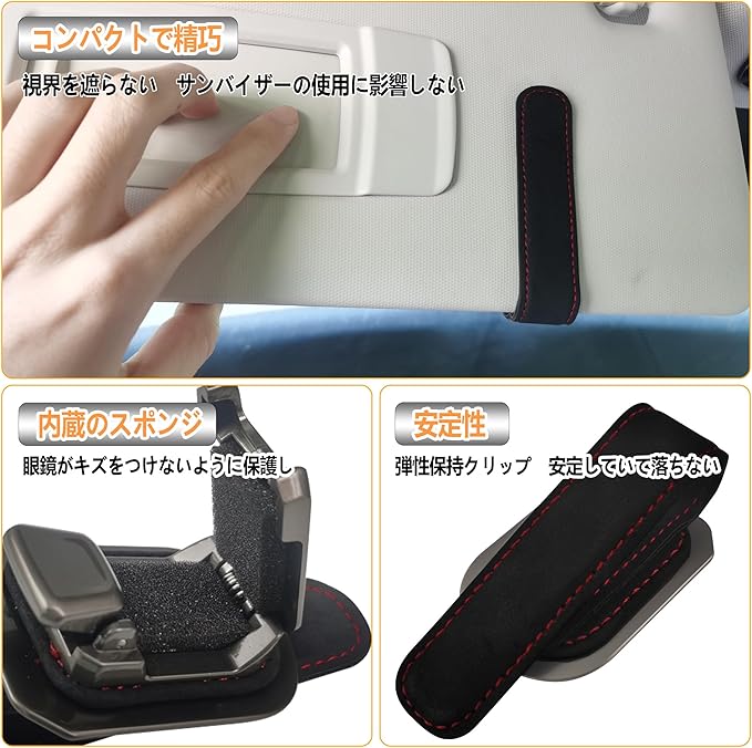 【2025年新進化 アルファード専用】 サングラスホルダー メガネクリップ サングラスクリップ レザー製 おしゃれ 車内収納 サングラス 眼鏡 サンバイザー取付簡単 傷防止 落下防止 Alphard用 ブラック