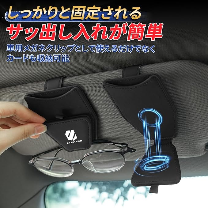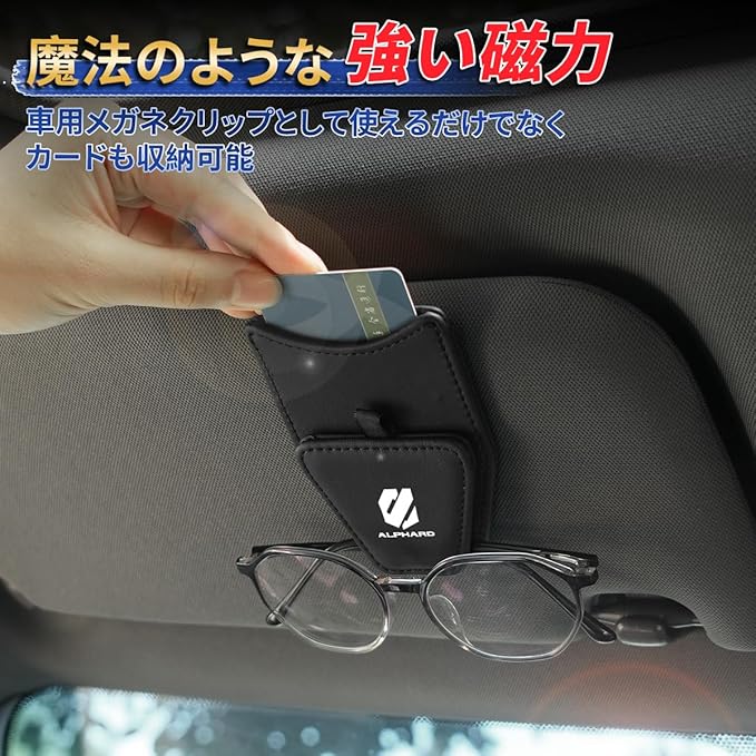 アルファード Alphard 車 メガネクリップ サングラスホルダー 磁気吸着 カード収納 対応Alphard 40系 30系 専用 車内 収納 サンバイザー メガネホルダー カー アクセサリー 人気 車用品 取付簡単 便利グッズ メガネクロスをプレゼント