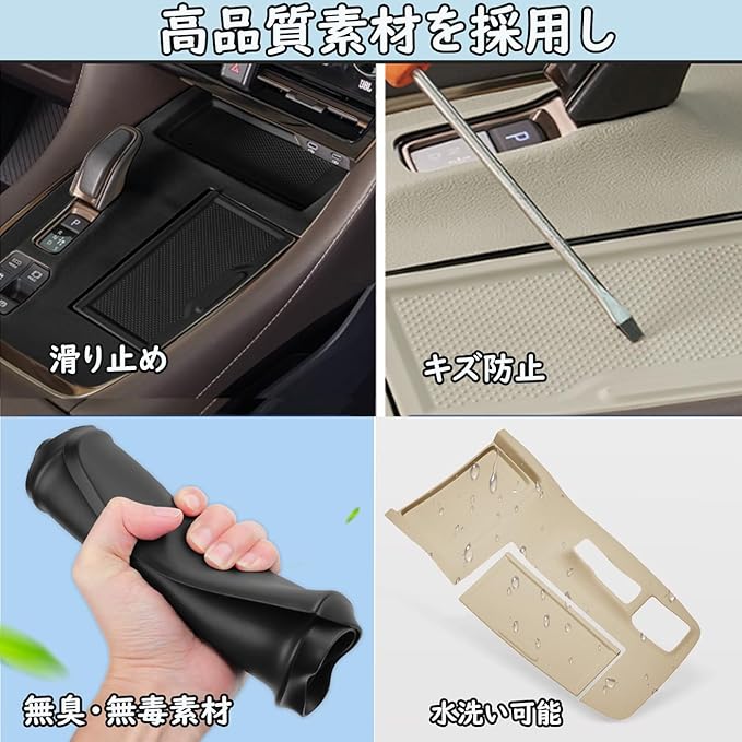 【傷防止と騒音防止】ゴム製なので、傷や指紋がつきにくいです。柔らかい滑り止めが車内の振動を吸収し、小物の滑りによる雑音を軽減します。静かで快適な車内空間を実現します。アルファード40系/ヴェルファイア40系は密着したデザインで、装着後も違和感なく快適に使用できます。