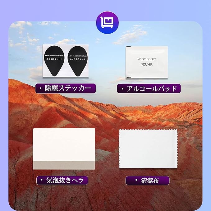 ✔【気泡レス! 強い吸着!】静電吸着技術を採用しており、液晶フィルムが直接設備に自己吸着できます。フィルムのシリコン自己吸着層により、位置を合わせて上から軽く置くだけで気泡が入ることなく簡単に装着できます。 専用の貼り付けツール(ウェットティッシュ、マイクロファイバークロス 、ホコリ取りシート 、固定用シール)は全部付属しています。フィルムを貼るのが苦手な方でも簡単に貼ることができます。