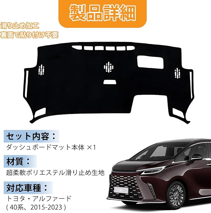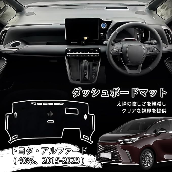 トヨタ アルファード 40系 専用 ダッシュボードマット HUDあり カバー 日焼け防止 劣化防止 ポリエステル 滑り止め 耐熱 耐久性 インテリア アクセサリー 内装カスタムパーツ ブラック