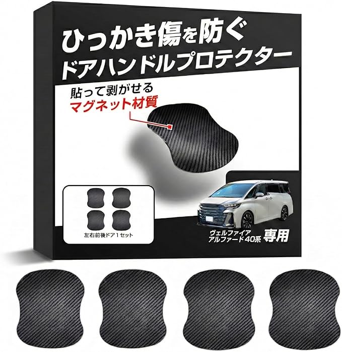 カシムラ 【アルファード / ヴェルファイア40系専用】 ドア傷防止マグネットシート 黒色カーボン調デザイン 貼って剥がせる 左右前後ドア1セット(4枚) NSK-TY006