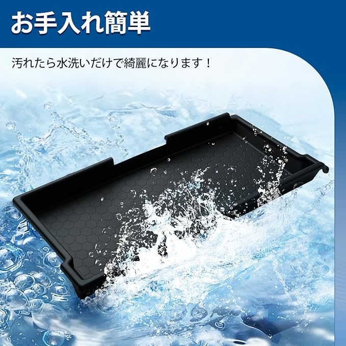 3.【製品仕様】:トレイ本体*1。トレイ本体はTPE素材を採用し、滑りにくく柔軟性があるため、走行中の振動でも小物がガタつきにくい仕様となっております。また、汚れてもサッと拭き取るだけで簡単にお手入れでき、いつでも清潔に保っていただけます。