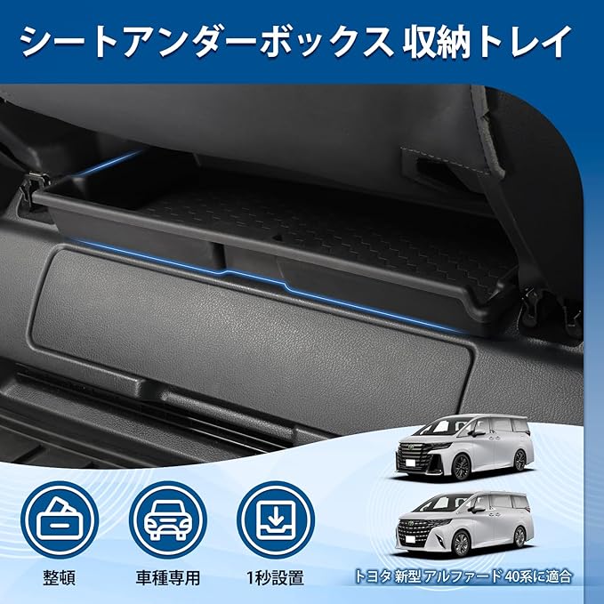 トヨタ 新型 アルファード ヴェルファイア 40系 シートアンダーボックス ALPHARD VELLFIRE 40 助手席下専用 シート下 収納ボックス 二列目 収納トレイ ケース 雑物 小物入れ R5.6~現行 アクセサリー 内装パーツ 車種専用 取付簡単 メーカー直営