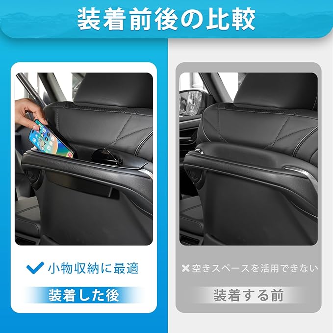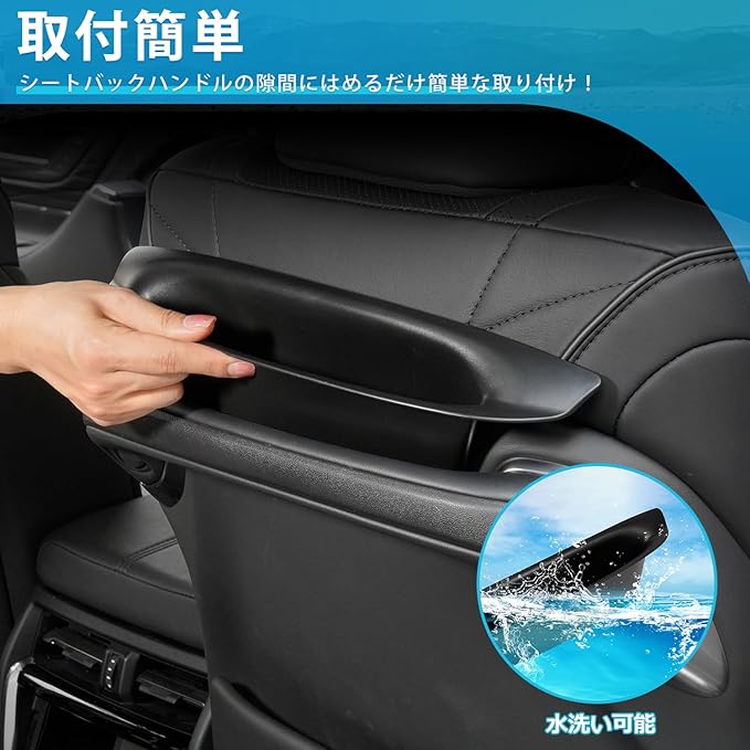 5.【取付簡単&車種専用】:シートバックハンドルの隙間にはめるだけ簡単な取り付け、汚れる場合に水洗いも可能。専用設計なので、フィット感も抜群、インテリアの雰囲気を損なわない。