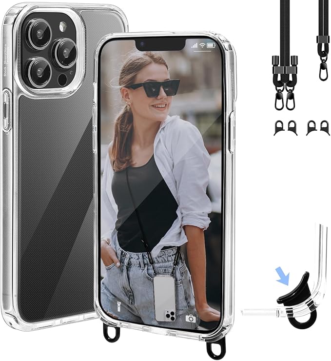 Handodo iPhone 15 Pro Max用ケース スマホケース アイフォン15 Pro Max用カバー ストラップ2種付き 取り外し可能なフック 調節可能 解体が容易 首掛け/肩掛け/斜め掛け 紐付き 高精細HD透明PC + 軽量 シリコン TPU 耐衝撃 傷防止 全面保護対応 アイフォン15 Pro Maxケース
