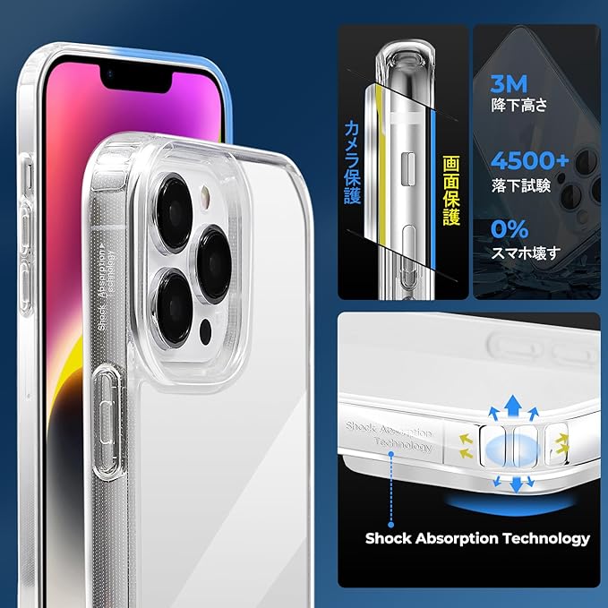 【高品質な素材で長持ちの透明さ】:ドイツ・バイエル社から輸入した高品質で環境に優しいTPU素材を採用しており、時間の経過による黄ばみやぼやけを心配する必要はありません。高い透明度を持ち、iphone本来の美しさやカラーを楽しめます。