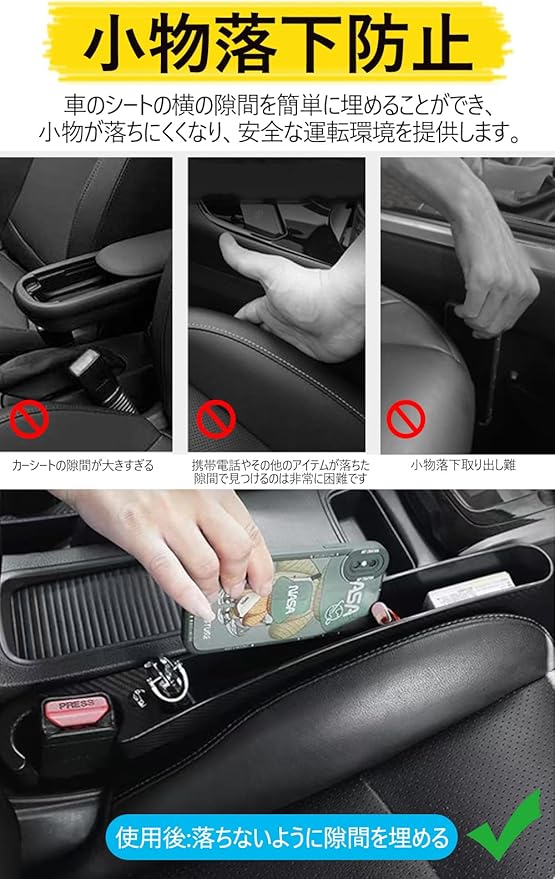 トヨタ アルファード 対応 隙間クッション 車用 シート隙間埋めクッション アルファード シートサイド 収納ボックス 大容量 スマホ収納可能 充電線孔あり 落下防止 サイド隙間埋め コンソール隙間埋め 内装パーツ 運転席/助手席 2個入り (トヨタ アルファード)