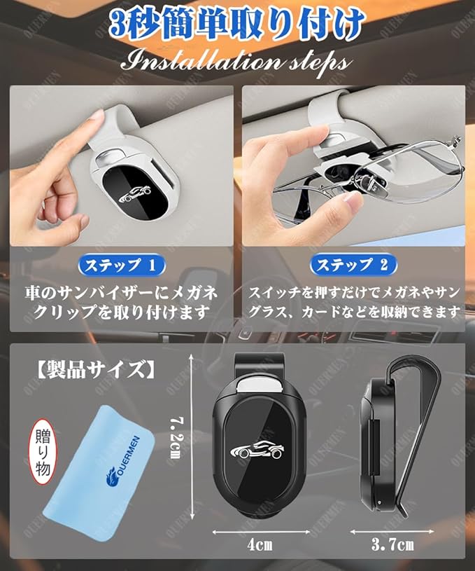 【高品質の素材】この車用メガネフレームは高品質のABSで作られています。長い寿命を持ち、サンバイザーに損傷を与えることはありません。内蔵のスポンジブロックは、眼鏡がキズをつけないように保護します。