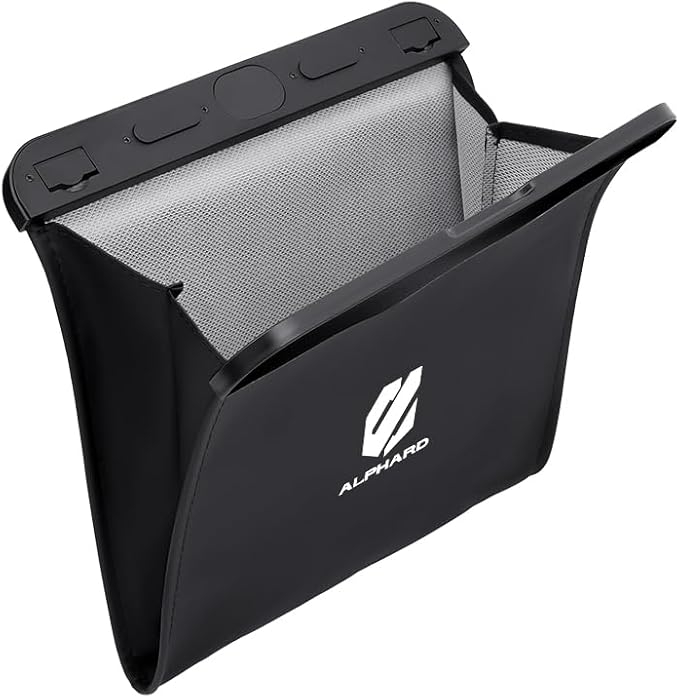 【魚鱗メッシュ裏地、優れた耐久性】この車用ゴミ箱は、裏地に魚鱗メッシュを採用しています。魚鱗メッシュの密度と強度は通常のメッシュより30%高く、強く引っ張られても破れにくく、耐久性と耐荷重性が大幅に向上しています。最大耐荷重は5kgです。適用車種:アルファード 20系 30系