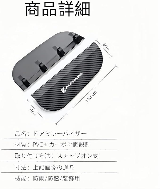 アルファード 適用 ドアミラーバイザー 車用 雨よけ サイドミラーバイザー アルファード 20系 30系 40系に対応 撥水 サイドミラー 保護カバー 梅雨対策 雨防止 雪防止 視界確保 左右2枚セット 外装パーツ かーアクセサリー 専用ロゴ 取り付け簡単(ブラック,アルファード適用)