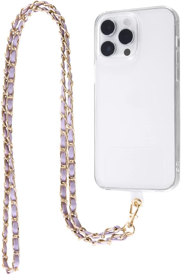 iPhone 14 Pro Max ハイブリッドケース/クリア+ショルダーストラップ PUレザー チェーン/パープル セット