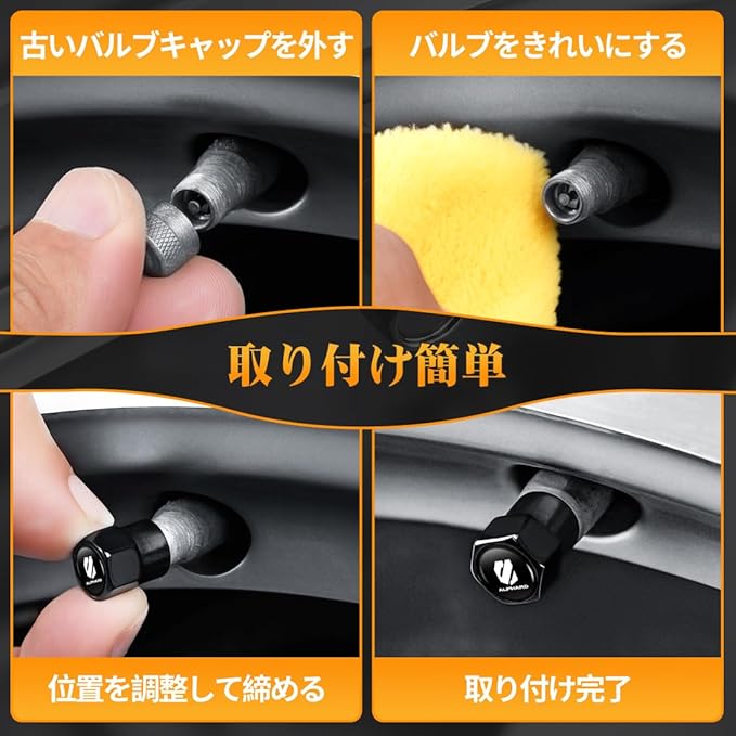 【工具不要 取付簡単】この車用タイヤバルブは、誰でも数秒で取り付けることができ、面倒な作業を省くことで貴重な時間を節約できます。取り付けた後、落ちにくいです。まずは古いバルブキャップを取り外します。次にバルブをきれいにします。最後に位置を調整して締めて取り付けが完了しました。手軽にご利用いただけます。